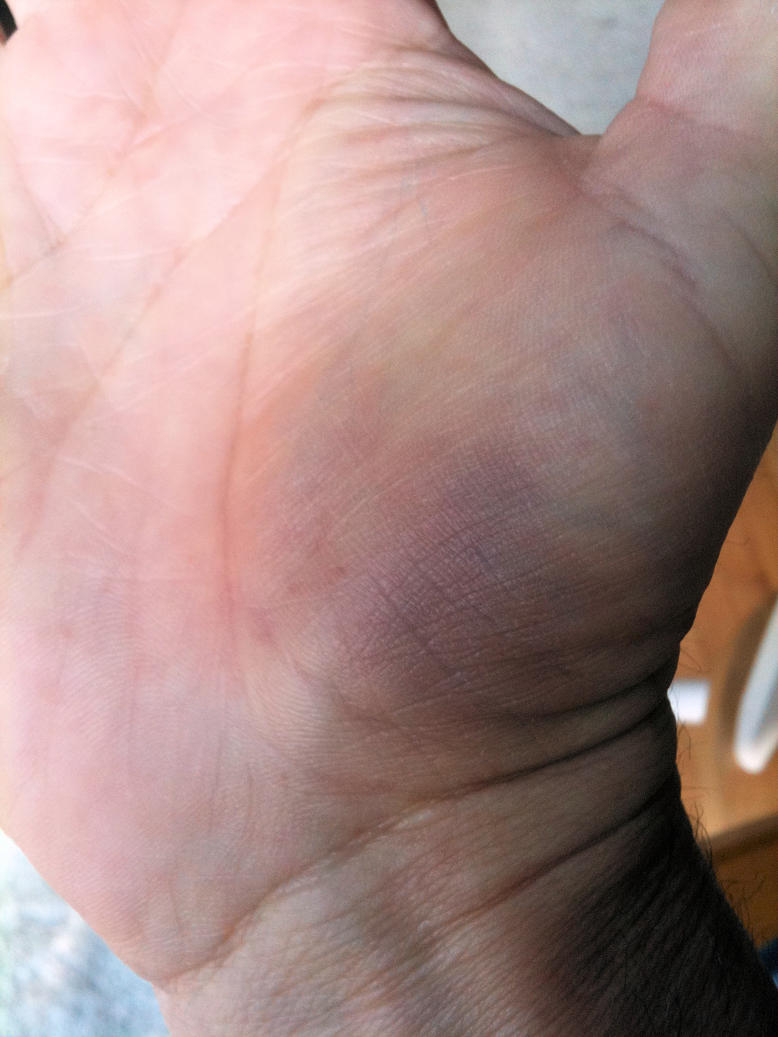 This is the first time back on a bike since the Metric Century. I was surprised the past two days how sore I was … until I realized that it was the tumble causing the soreness, not the ride. The bruises on my palms were quite sensitive. I evidently stretched something along my back and side. Nothing obviously broken. Today that familiar endorphin buzz was back and felt pretty good.