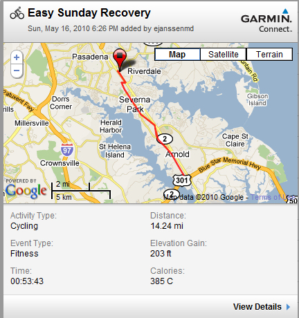 I got out for a short ride late this evening. My goal was to keep my heart rate below 125 as I recover from giving a pint of blood yesterday. It was a nice, easy ride. I was surprised that I could go as quickly as I did at times without increasing my heart rate too much.