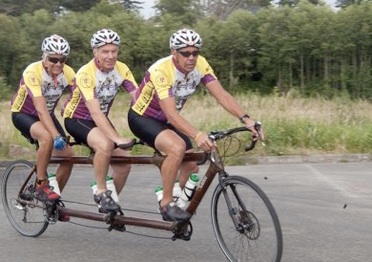 Tour de Revs guys on their custom bamboo bicycle built for three