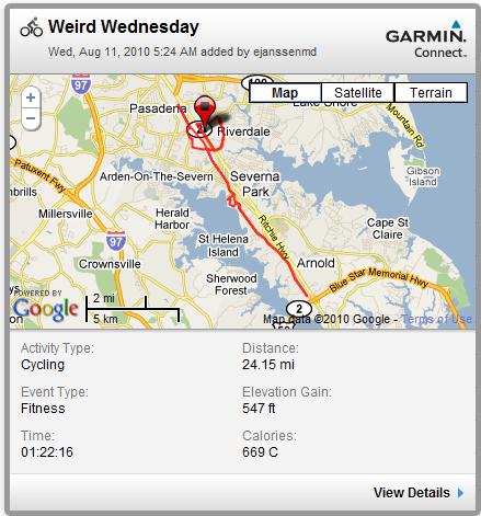 Wow, what a Wednesday. I got out early enough to ride about 3 miles before deciding whether or not I would join the Wicked Wednesday Ride. My heart wasn’t into it but I decided to join the group this morning anyway. The ride to the Rusty Bridge was uneventful, except for encountering the runner wearing all dark clothes. Good thing I didn’t hit him. There was a good group that started out, I think 7-8 riders. No one was terribly excited to push it hard, so a brisk, not impossible pace was set and we settled in at an average of about 19 mph.