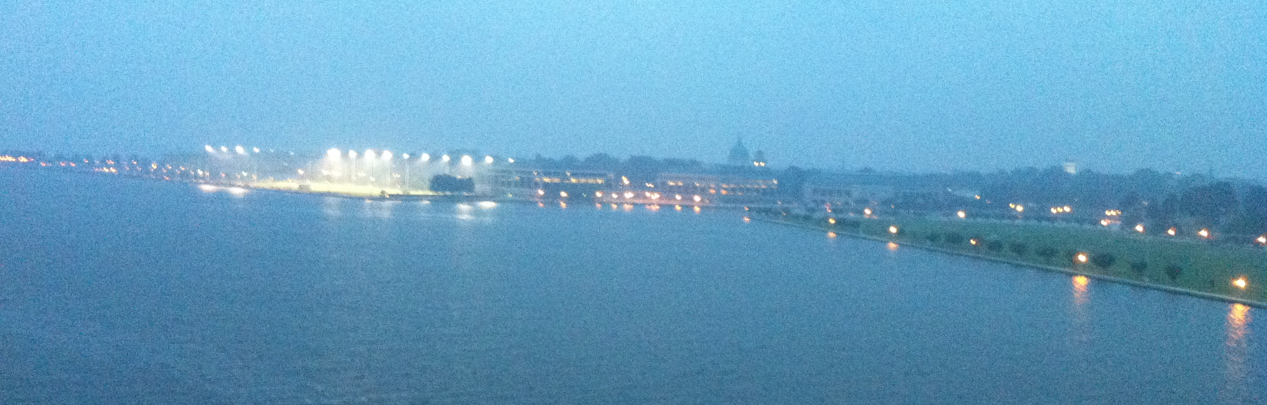 The sun was not yet up, but with the haze and lights, it was still lovely. I expected some color in the sky, but grey is all we had.