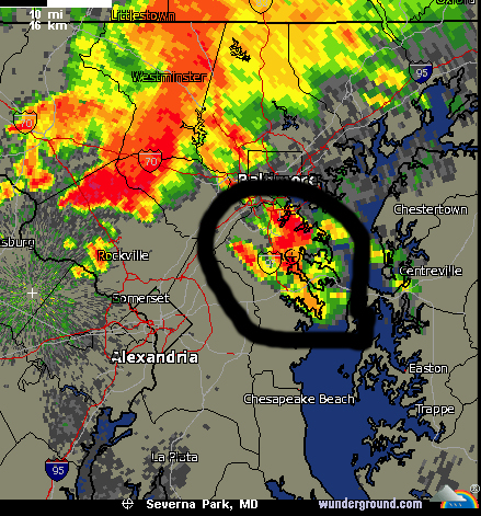 As soon as I could, I decided to check the radar to see what happened. This is what I saw when I ran it back to about the time the rain started for me.