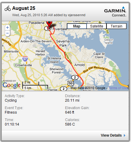 Last night I received an email from Mike B asking about my usual morning ride and whether or not he could join me. A riding buddy is always welcome! We made plans, and I set out at 5:30 a.m. to meet him in the dark on the trail. We had a good ride to the Naval Academy Bridge. Plenty of good conversation and a reasonable pace.