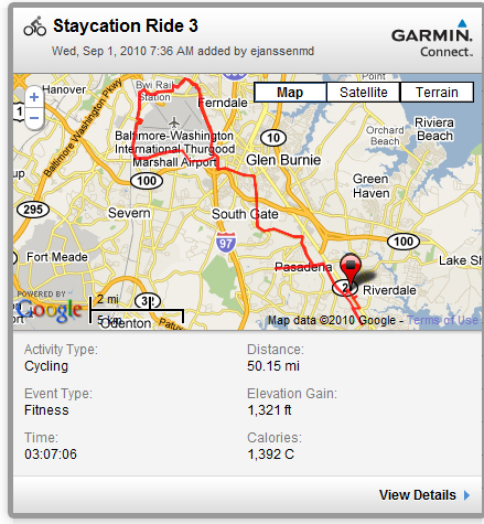 As the morning progressed, I felt stronger and stronger. I decided early to do the Airport Loop, and after completing it clockwise, I reversed and went counterclockwise (with a short pit stop for Gatorade and a banana). At the end of that, I reversed again, finishing the loop clockwise and headed home. I added just enough distance to be sure of a 50 mile ride, and felt pretty good about it. I won no speed awards again, but I was still 1 mph average over yesterday’s ride, which is no small thing.