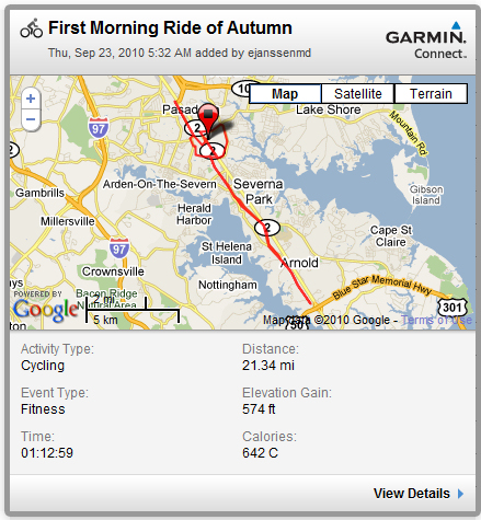 Welcome to autumn. A strong thunderstorm rumbled through last night. Most of the water evaporated so it was mostly dry with a few puddles. The moon was full, and a little higher in the sky this morning. It was about 68 degrees, a perfect morning for a bike ride. That’s what I kept telling myself as I rolled out of bed. I really didn’t want to ride this morning. My legs felt heavy and I’m tired. This was one of those mornings that routine is what got me out the door fully clothed and ready to ride. I’m amazed I didn’t forget anything.