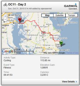 This ride was a significant accomplishment in my brief riding experience.  I never would have believed this was possible last January when I first decided to ride regularly and set as my goal for the year the completion of a Century Ride.  I logged 3 Centuries in October, two of them back to back on consecutive days.  My family, especially my children are amazed that this old man can do this thing.  I’ve got to say … I’m also amazed.