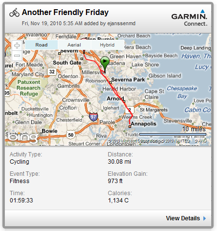 The ride back was at an easy pace, and I continued on to the hospital to pick up Lori’s car once again. That gets me an extra 5 miles and speeds our trip into Annapolis at the end of her work day.