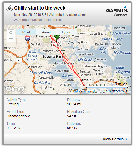 This was my first ride this year below freezing. It was 26 this morning. That means that I wore all the warmest cycling clothes I have. I was looking forward to the ride although I was a little worried about the bike. I’ve done no maintenance over the weekend after the rainy ride and two flats, except bleed out the CO2 and pump air into the tires. I’m glad to say there were no mechanical issues to report.