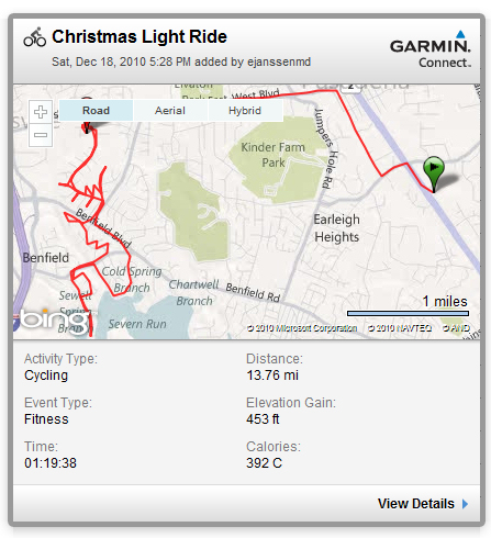This has been dubbed “The First Annual Severna Park Peloton Christmas Light Ride”. It was a hit!
