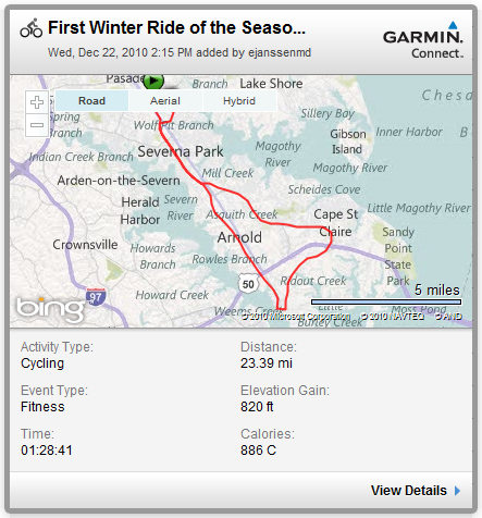I can’t take the remaining days of December for granted. Snow is possible this weekend, and some forecast models indicate it could dump quite a bit on us. If I don’t want to finish my 6000 miles on the trainer, it makes sense to get as many as I can in before the weekend. It looks like a 2-3 good rides will do it.