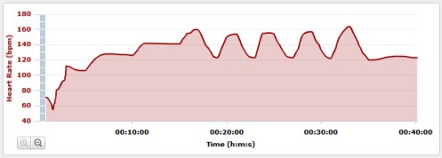 I didn’t ride Mosey Monday at 12° F. I didn’t bundle up this afternoon to go out in 28°F. Between the cold weather, the wisdom of intervals on the trainer, and other excuses, I decided to hop onto the trainer this afternoon and work some intervals into my routine. I rode 40 minutes with 5 intervals into HR Zone 4, using the Garmin’s Workout feature. I think I’ll refine the workouts and try to use them more consistently. The trainer set up needs to be adjusted. I had some numbness and some leg pain at the end of the session.