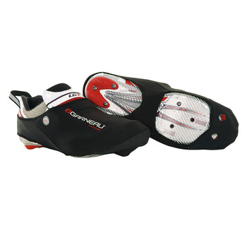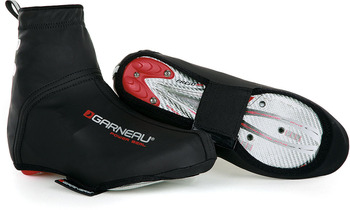 On a very long ride at 60°F, I also might use these covers, because as energy level drops, it is important to keep warm. - When the temperatures are in the 40°s F, these covers are not quite warm enough. In this temperature range, I use a more substantial cover, the Louis Garneau Thermal Seal. This is a cover that has a full shoe and ankle cover profile, blocking the wind from the entire foot and ankle.