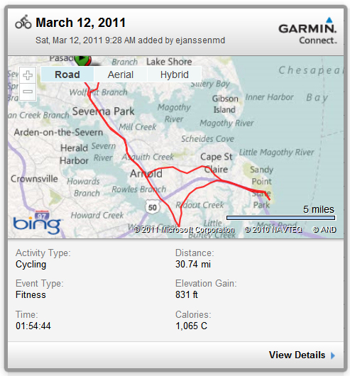Having not ridden much this week, and with Lori out this morning with blood donation and a few errands, it seemed like a good time to get out and get a few miles in. I couldn’t swing the 7:30 ride to Annapolis, so instead I rode a solo ride to Sandy Point.