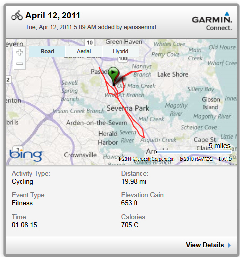 I’m posting only Tuesday’s Garmin track due to the hiccup in today’s Garmin data.