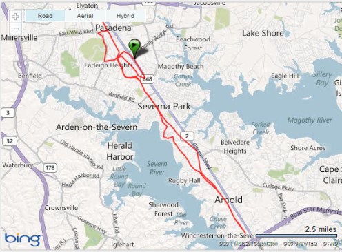 I did push it up the sprint hill I’ve set up on Strava.com for my interval training, and set a new personal best time and average speed on that segment (24.5 mph).