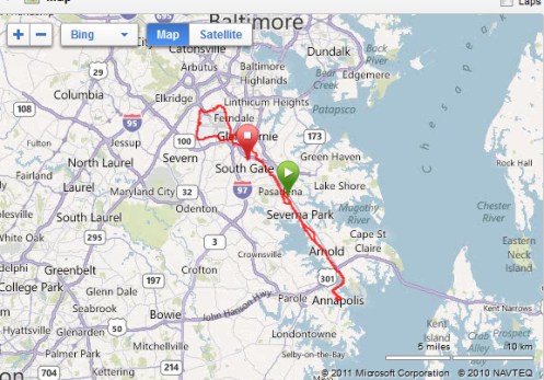 Friday: Friendly Fixie Friday started with 11 riders with six continuing on into Annapolis and Jeff S. joining us by car. The forecasters missed the low, predicting that it would be colder than it was, and so we enjoyed a 42° F morning. I matched my best time across the Naval Academy Bridge (on the fixie) and was quite comfortable with my 32+ mph top speed with the Garmin saying I topped out at only 121 RPM. (Calculators indicate I had to be doing 150 RPM.) Following a sticky bun and coffee breakfast, I joined up with Mike B and rode north around the airport before picking up a car again at the hospital where Lori works. There were several times on that extended route I simply wanted to quit, but I’m glad I continued on.