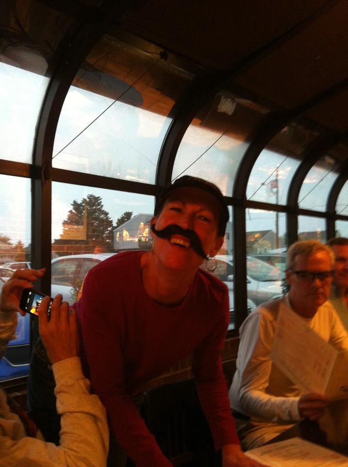 My ride started as I left home at about 6:30 am to ride to the Jones Station Park and Ride where I would be meeting up with Mike, Clint, Sebastian, and for a ride across the Bay Bridge. My car is in the shop, and it just made sense to ride the easy 3.5 miles. I carried with me a backpack with clothes to change into for the dinner and return trip, as well as my decorated bike. Yes, the bike and my helmet were decorated. This ride was on Cinqo de Mayo and part of our promo material suggested “costumes” or bike decorations. My preparation was the most elaborate, as it turns out. I supplemented my own grey mustache with a black stick on mustache. I wore a miniature sombrero on my helmet and a serape around my headlight. An “Ole” Sombrero printed card served as my spoke card on my rear wheel. I bought Clint a matching mustache, and he wore his nearly the entire ride. Not only did this get-up earn me the award for the best “costume”, but unfortunately other than Clint’s mustache, I was the only one who did anything special. It made me the envy of all the other riders.