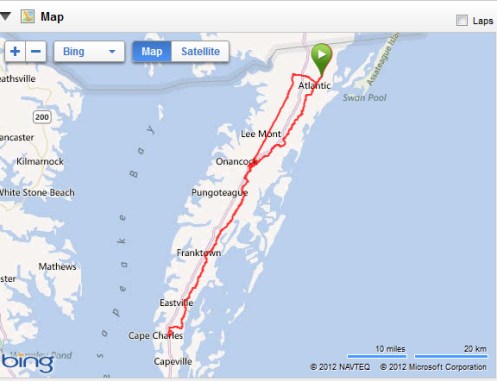 Everyone seemed to be feeling pretty good on the return leg. We continued the plan with some very fast speeds as we headed north toward the finish. Between the information control at mile 69 and our stop in Onley, we had a 20 mile stretch with 5 mile segments of 19.7, 21.0, 18.9, 19.1 mph back to back for an average of 19.7 mph.