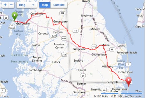 On this final leg, Mike had a double flat and a few minutes later, the final flat of the day was encountered by another rider. We made short work of both of these, and pressed on into the building wind. Chip was getting antsy, and challenged us to some very fast stretches. That worked for some of us, and gave us a break while the others caught up after we stopped. There were longer stretches with limited conversation, mostly as we battled the wind. As we turned east toward Ocean City, the wind seemed to pick up again and was a quartering headwind and as always on this last leg was brutal.