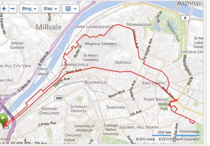 Continuing to follow the route let me to a road that was closed with a gate into a park. I wandered around some, noted some rain sprinkles, and decided to simply find my way back to the hotel. After getting lost, I ran across Penn Avenue and knew that road went right by my hotel. I turned SW and started a fun descent. I loved the nearly 30 mph for quite some time on roads with a speed limit of 25. I was still being passed by cars!