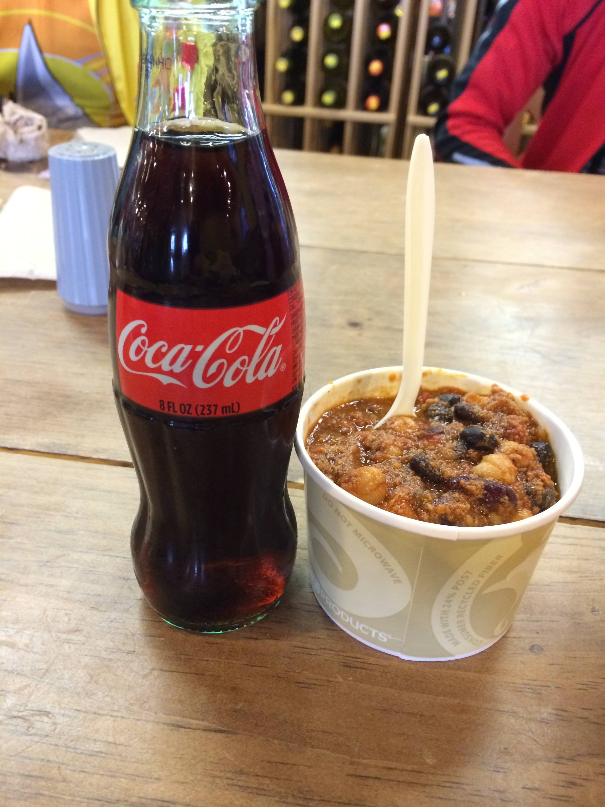 I’ve learned to eat lightly at these “meal” stops, and so I had a cup of turkey chili and an 8 oz bottle of Coke. It really hit the spot! I don’t see many 8 oz bottles any more. It was just the right amount.